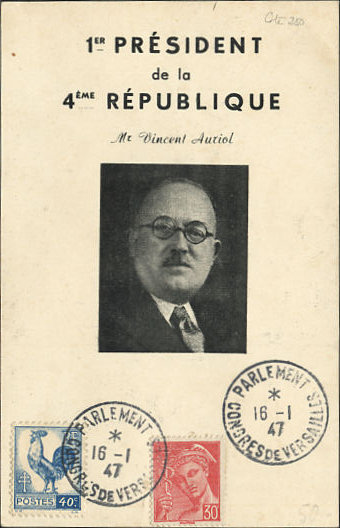 Dès le début 1943, la France Libre s’organise à Alger avec un Gouvernement provisoire et une assemblée consultative qui devient constituante. Après trois référendums et deux élections législatives, la 4e République est enfin en place le 16 janvier 1947 avec l’élection de Vincent Auriol comme premier président.