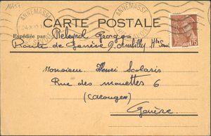 Carte postale adressée d’Annemasse vers Genève le 24 octobre 1939. (Krag ANN501)