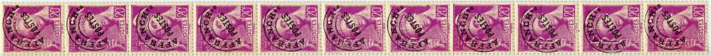 Le timbre de roulette a un type particulier reconnaissable (difficilement) à un point au croisement des serpents et le premier S de POSTES terminé par un renflement.