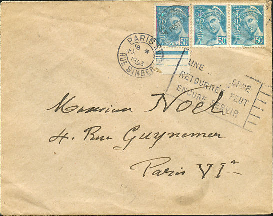 Le 5 janvier 21942, le port d’un imprimé ordinaire jusqu’à 20 grammes passait à 50 centimes. Il a donc été nécessaire d’imprimer des timbres pré-oblitérés pour cette valeur.