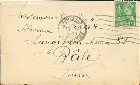 Cette bande à destination de Ciudad Juarez au Mexique et partie de Paris le 19 juillet 1939. Elle contenait un journal de 50 à 100 grammes.