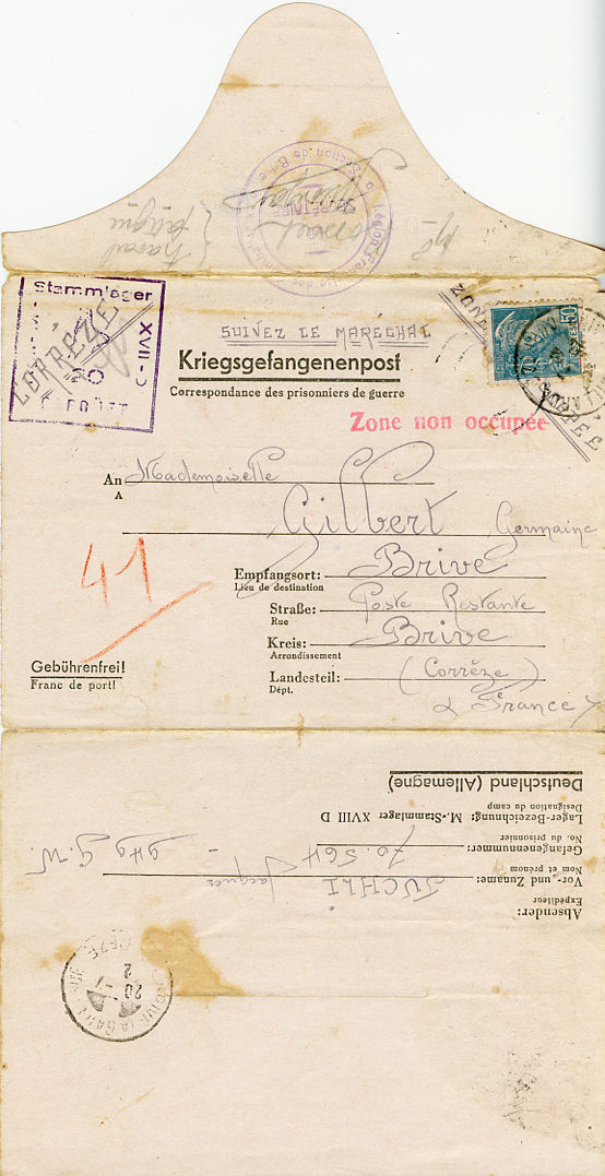 La lettre a transité par la Maison du Prisonnier de Brive.