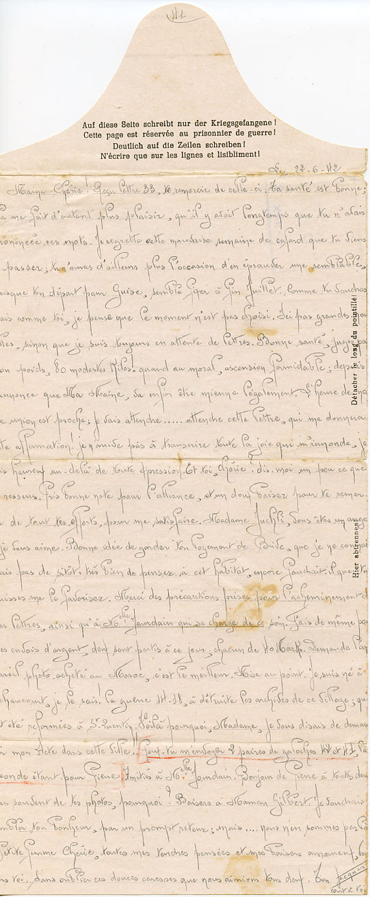Ce formulaire provient d’un Stalag de la XVIIème région militaire située en Autriche comme l’atteste le tampon de censure en haut à gauche.